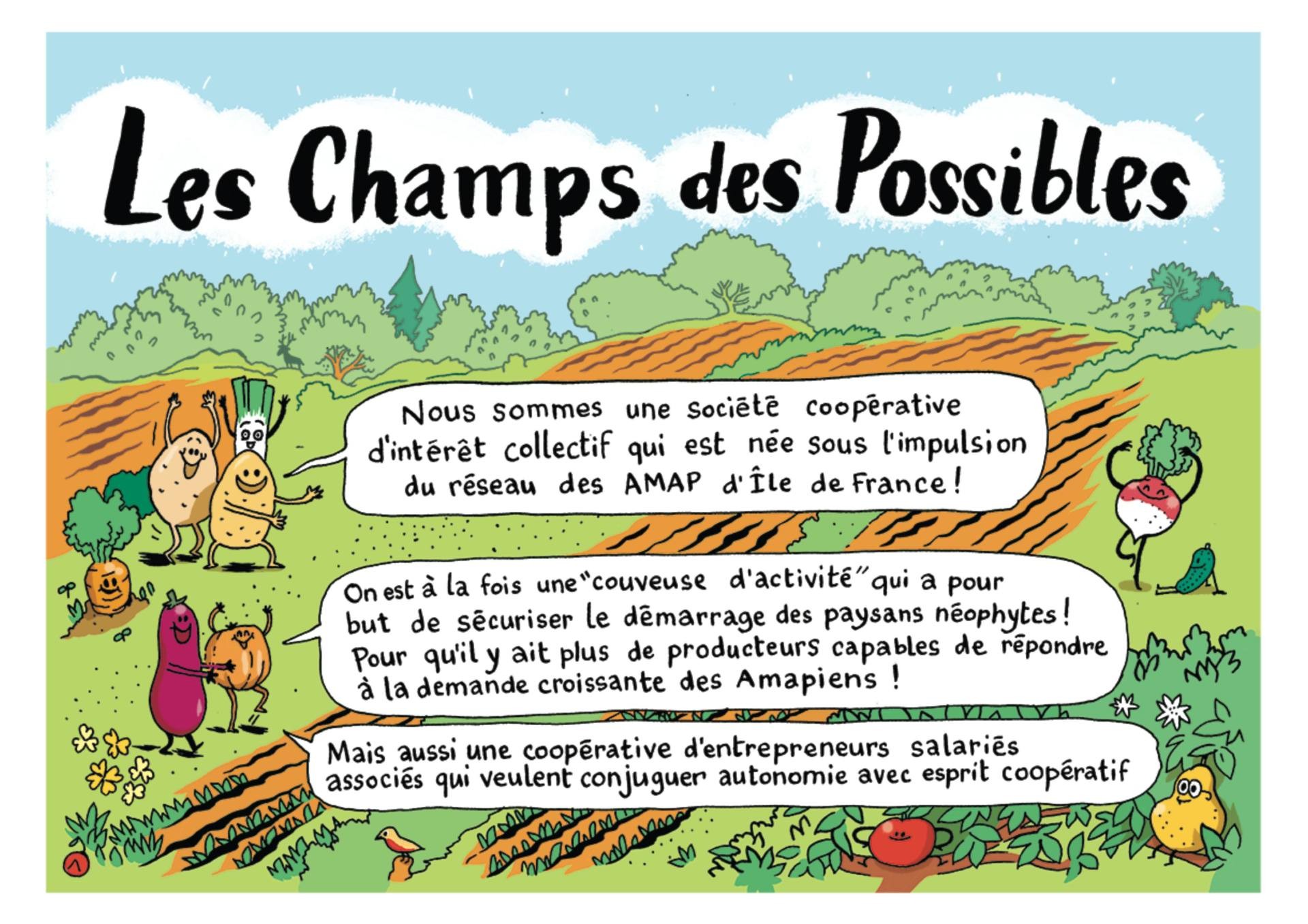 Les Champs des Possibles est une coopérative d’activités agricoles et alimentaires qui réunit paysans, artisans alimentaires, consultants, animateurs porteurs de projet, consommateurs, collectivités et autres associés autour d’un projet de coopération économique et sociale.