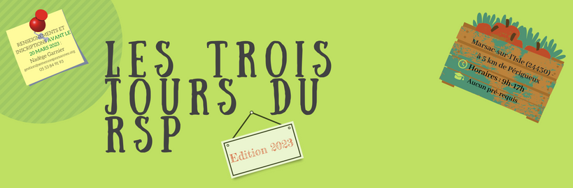 Cette édition se déroulera du 29 au 31 mars à Marsac-sur-l'Isle (à 5 km de Périgueux). Cette formation est "à la carte" : il est possible d'assister, au choix, à un, deux ou trois jours, selon les sujets qui vous intéressent le plus...